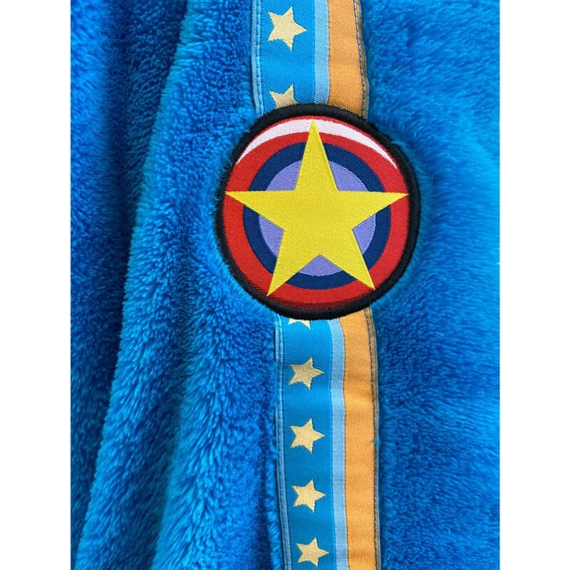 Talla unica. Poliester. Un albornoz sin capucha de Super Sonic the Hedgehog. Este albornoz cuenta con múltiples bolsillos, incluido uno para el teléfono, detalles bordados y una insignia tejida que hace un sutil guiño al juego. Cada brazo tiene una cinta tejida aplicada con una insignia de estrella tejida. La pieza central de este albornoz es el icónico motivo de satén en la espalda.