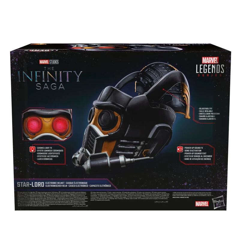 Activa los sonidos del casco electrónico premium de Star-Lord de Marvel Legends con el toque de un botón y lánzate a la acción galáctica.