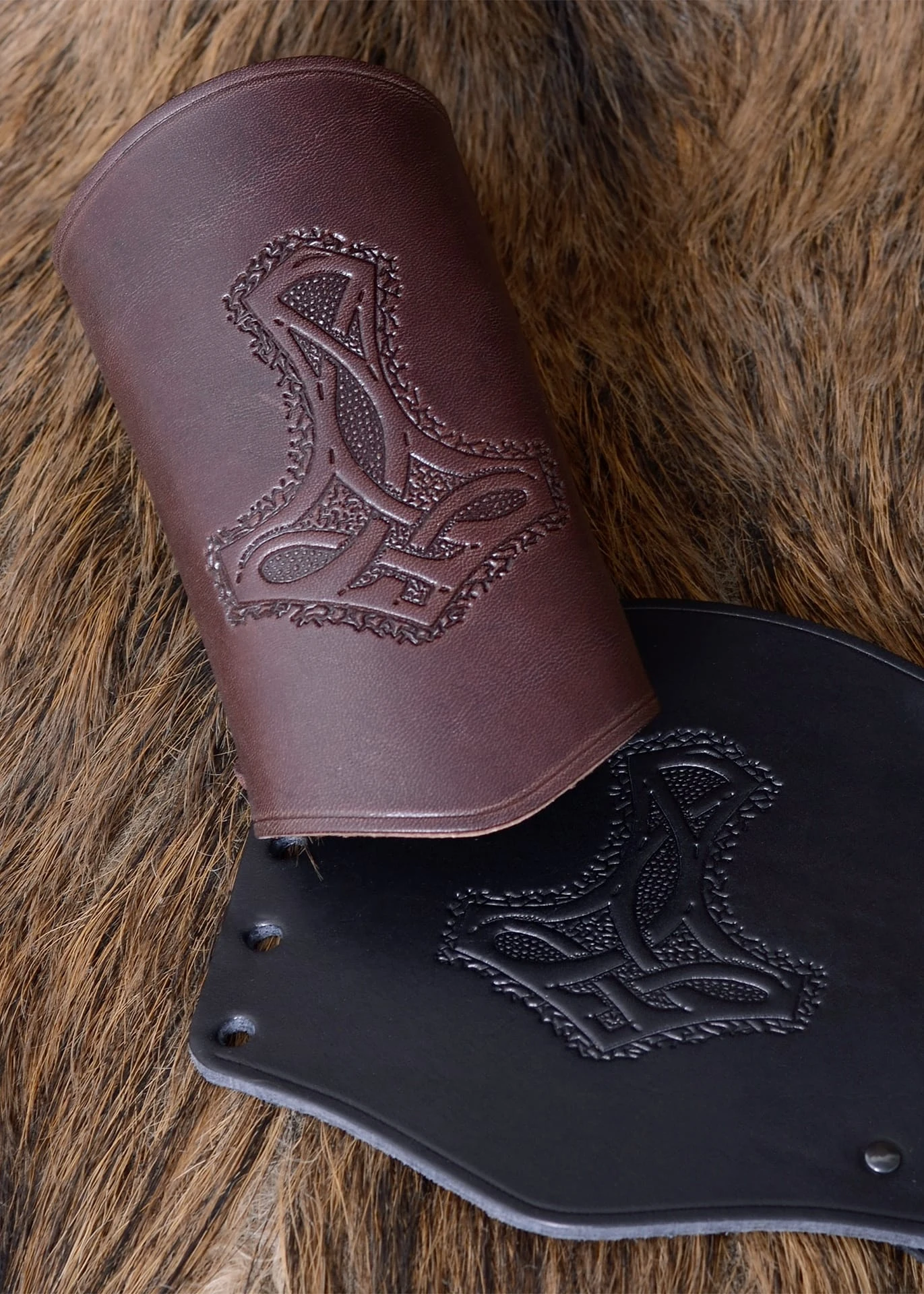 La característica especial de este brazalete de brazo largo con un relieve Thorshammer es el subrayado con cuero suave en el cordón. Por lo tanto, la piel y el cabello están protegidos de pellizcos.