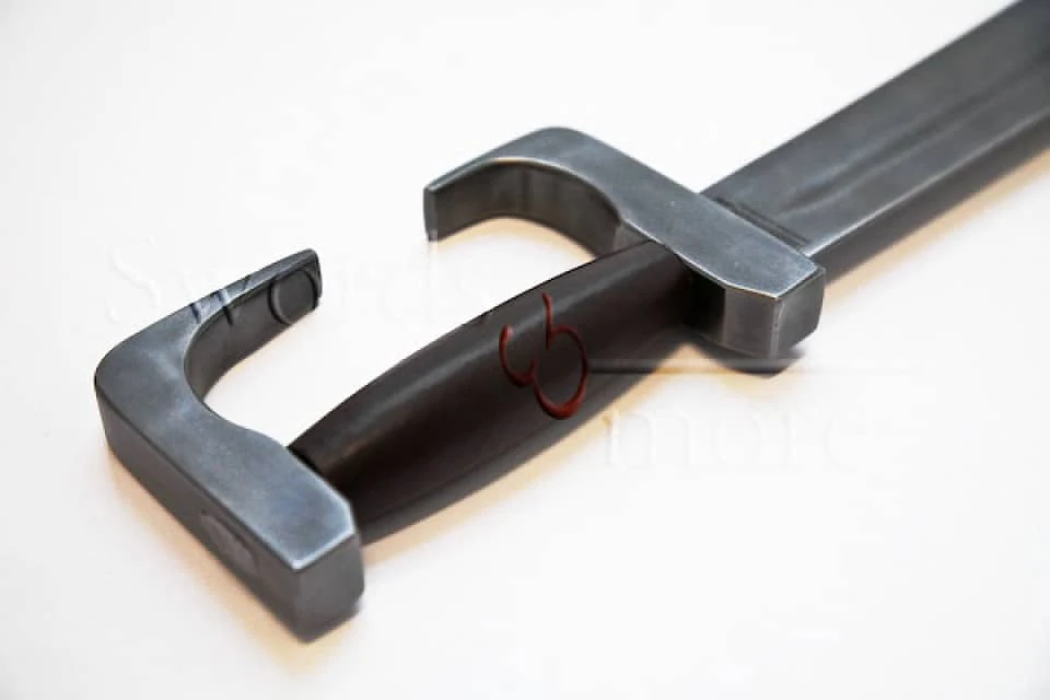Una versión totalmente lista para el combate y forjada a mano de la espada 300 ya está disponible por primera vez. Molinete forjó a mano esta espada de acero al carbono 1095 y la endureció con una hoja de 61 cm de largo. La hoja está remachada al final del mango.