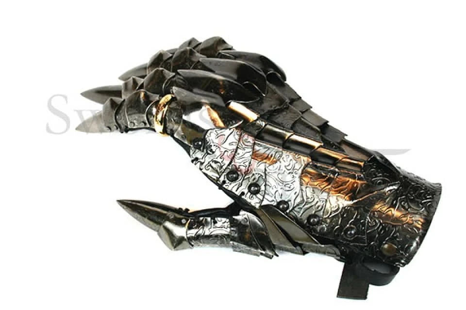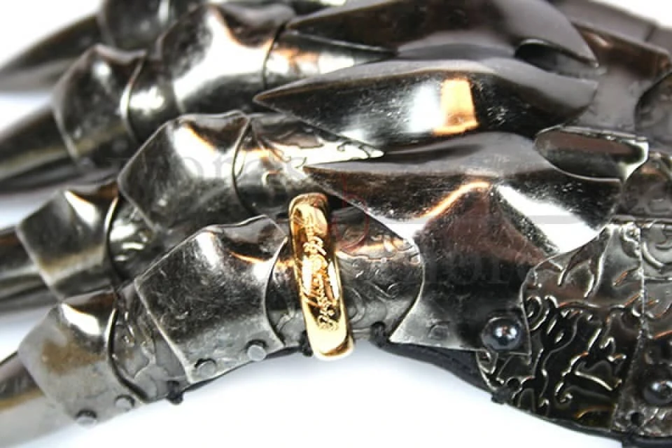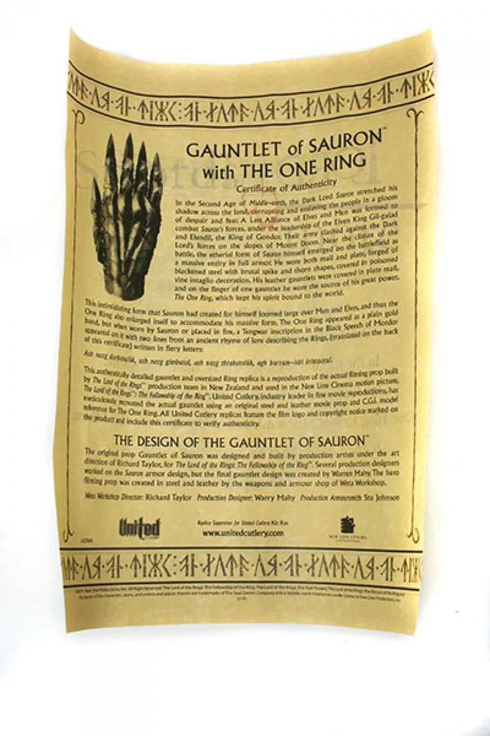 La reproducción del guantelete utilizado por el temido Señor Oscuro Sauron en la película La Comunidad del Anillo, es una verdadera obra de arte. Fabricado con materiales de primera calidad como cuero y hierro auténtico, este guantelete cuenta con más de 35 piezas finamente detalladas y grabadas en su superficie para lograr un acabado impresionante.